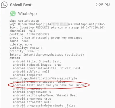 But a new report from a Spanish blog claims that WhatsApp messages that are deleted are actually still on the device, and can easily be accessed through Settings by the recipient. The recipient can easily access the deleted messages regardless whether it has been deleted from sender's end.Whenever a notification comes in to an Android devices, it is stored in the notification log whether or not it is subsequently deleted by the sender. While the bulk of the data in the log is technical information, the first 100 characters of the notification message is also recorded. So while users may not be able to see the message within WhatsApp after it is deleted, they can still see it in the notification log which can be accessed in two ways.