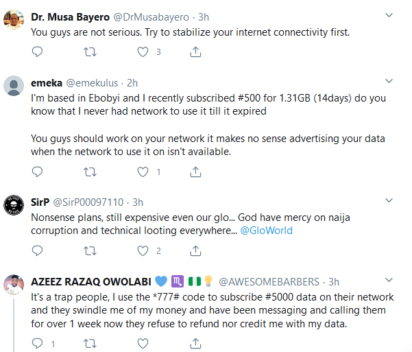 According to these social media users, they believe Glo is not doing anything to improve their network coverage, as well as the validity period for the special data plans, which is deemed to be too short.